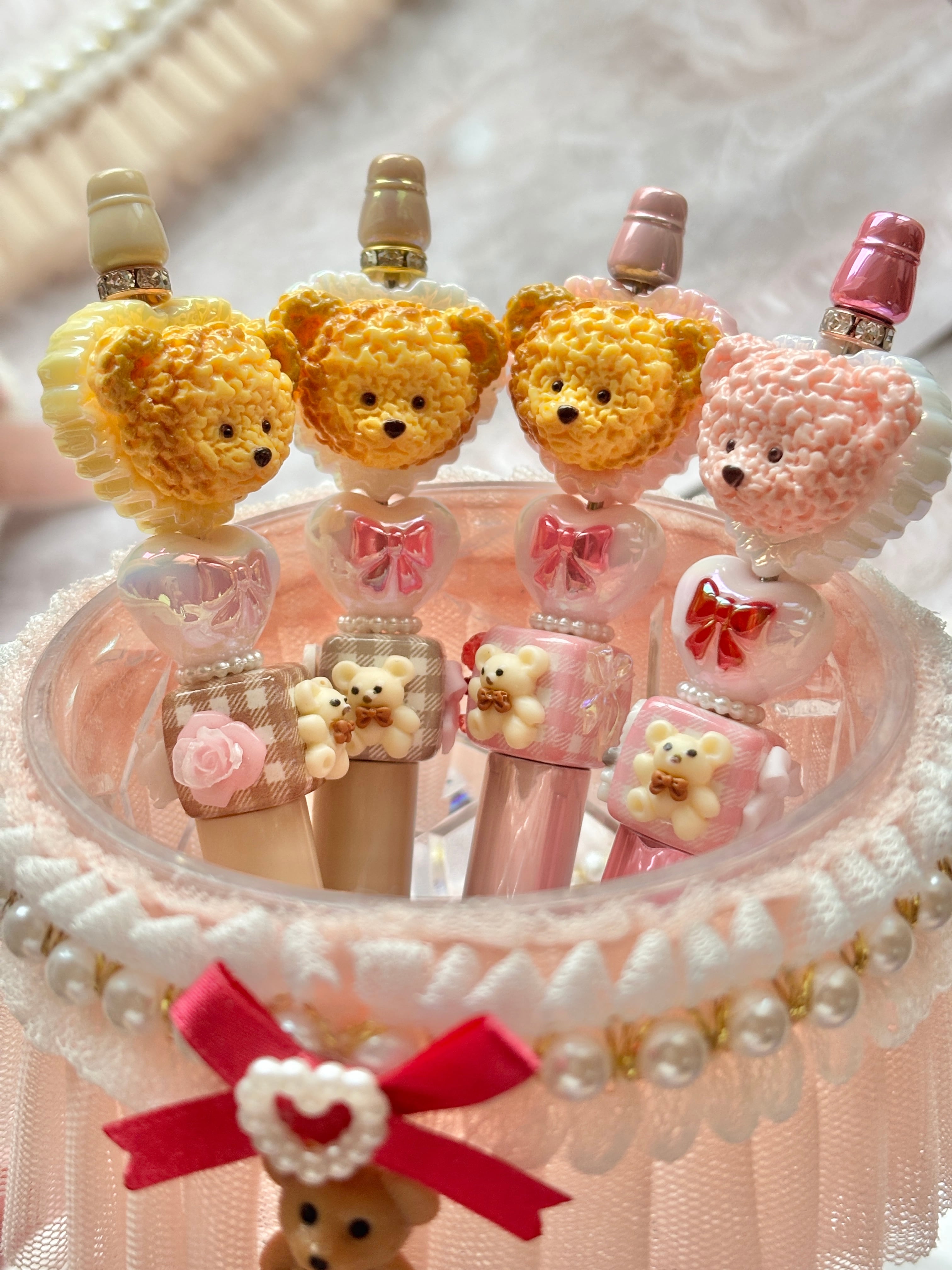 ファーチャームは「4本購入時」にノベルティとして各ペンに1個(合計4つ)付きます。