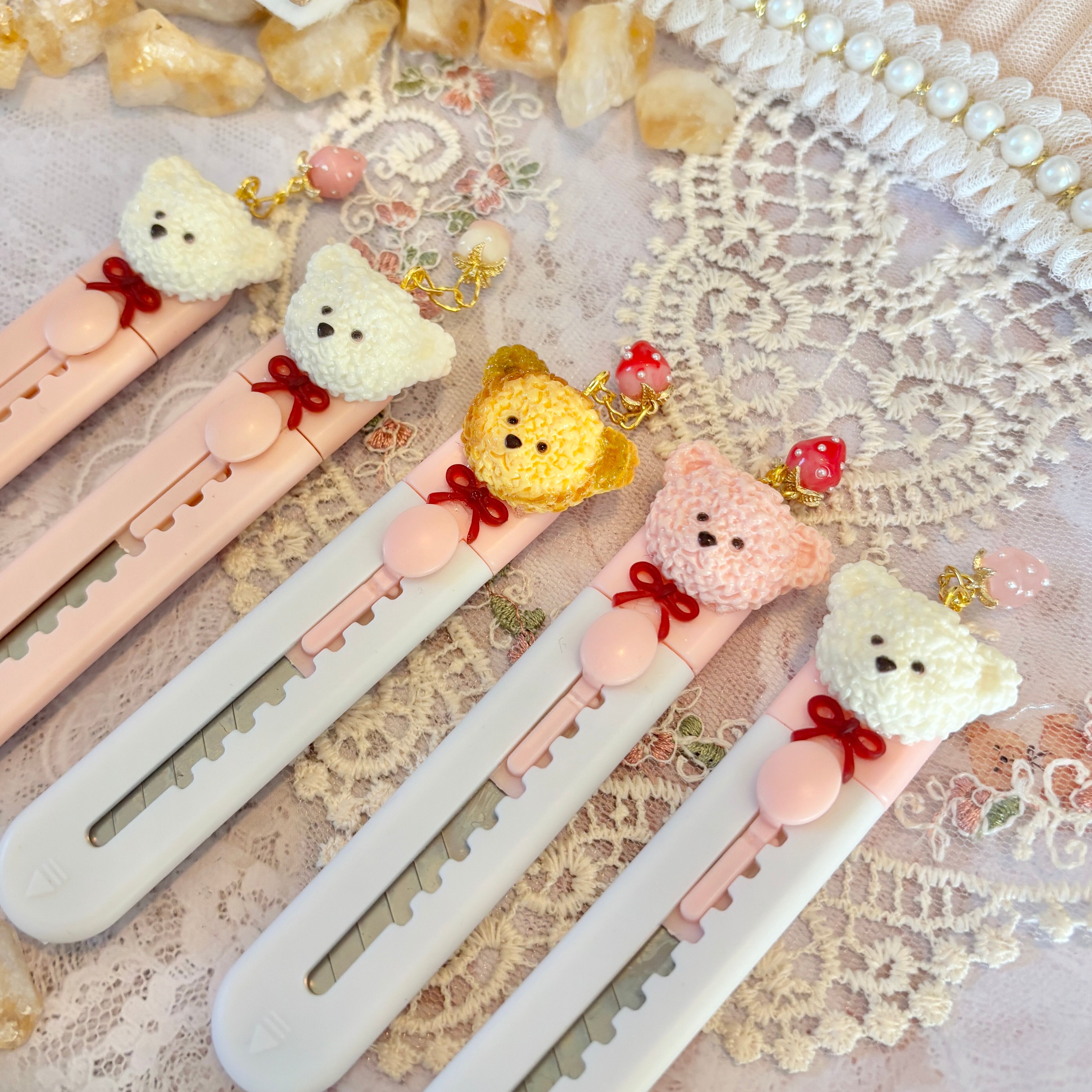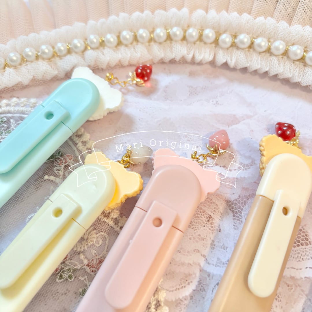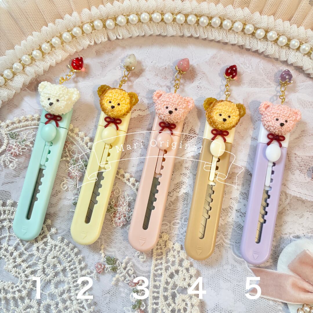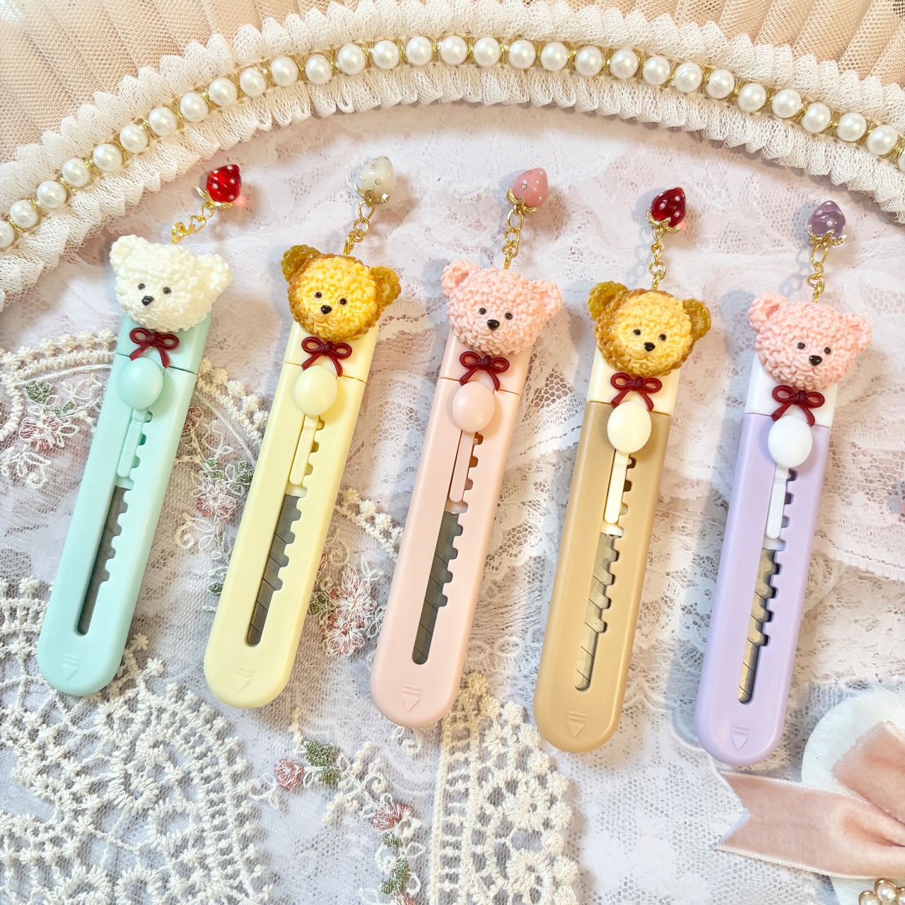 【お好きな2本 選択式】いちごチャーム付きくまちゃんカッター(背面クリップ式)