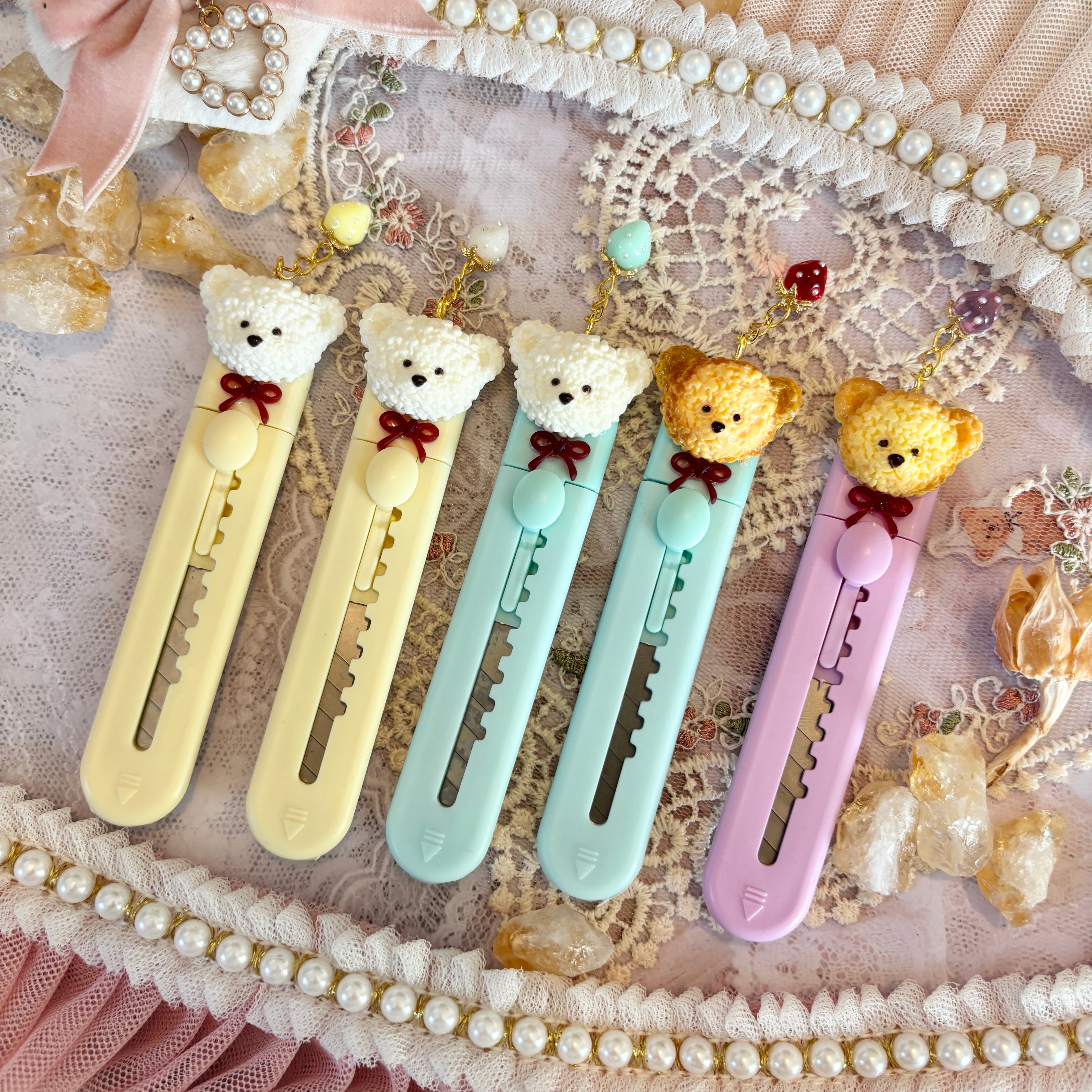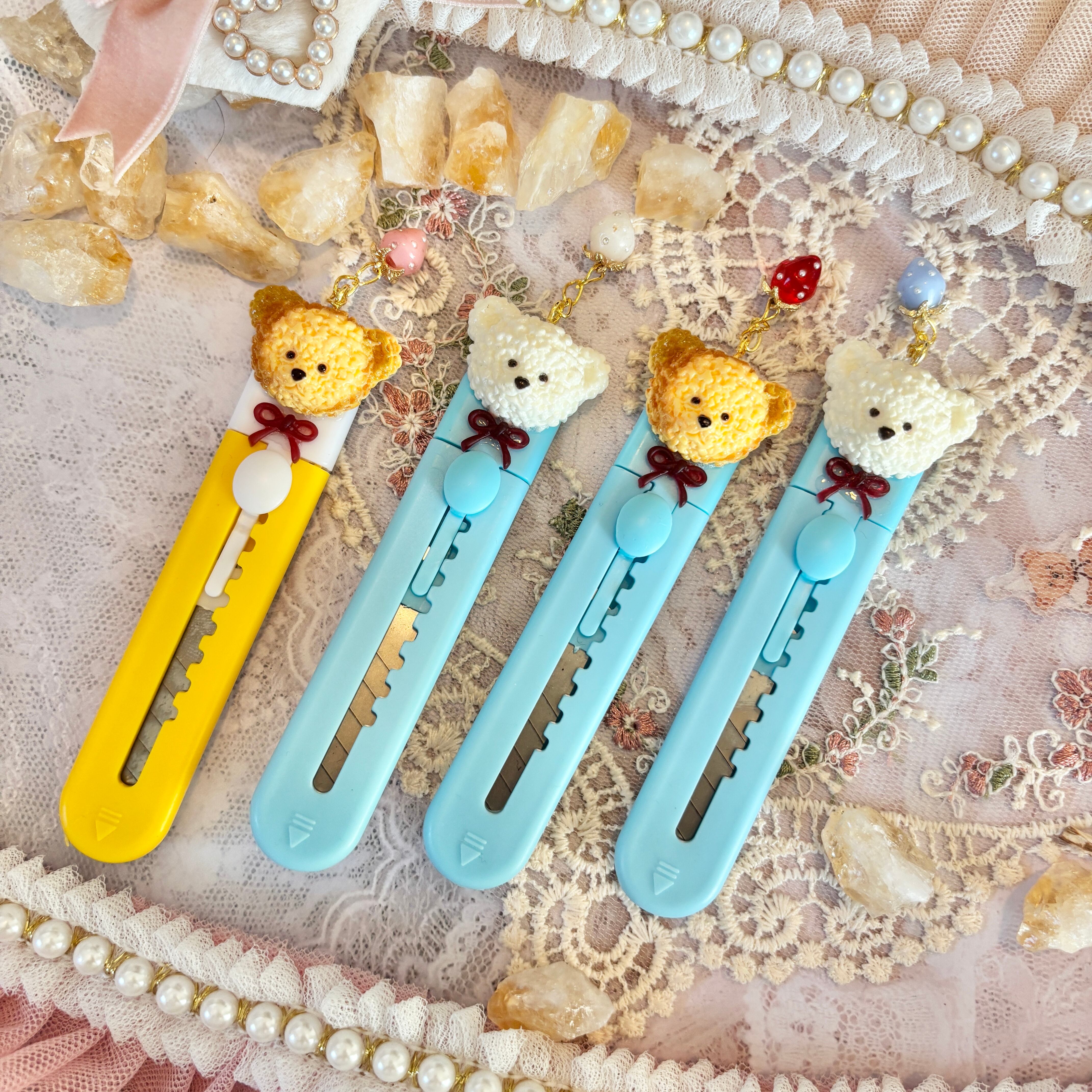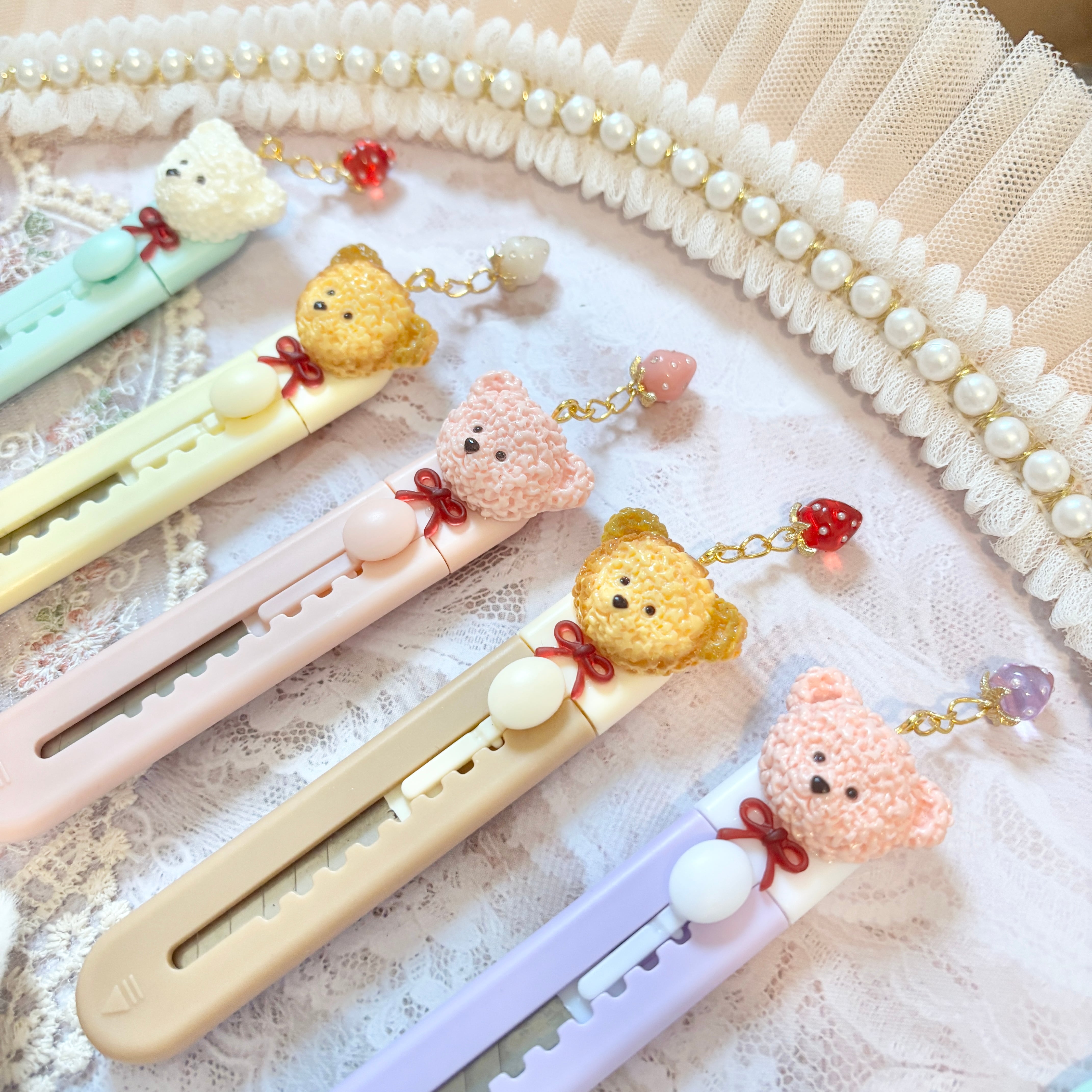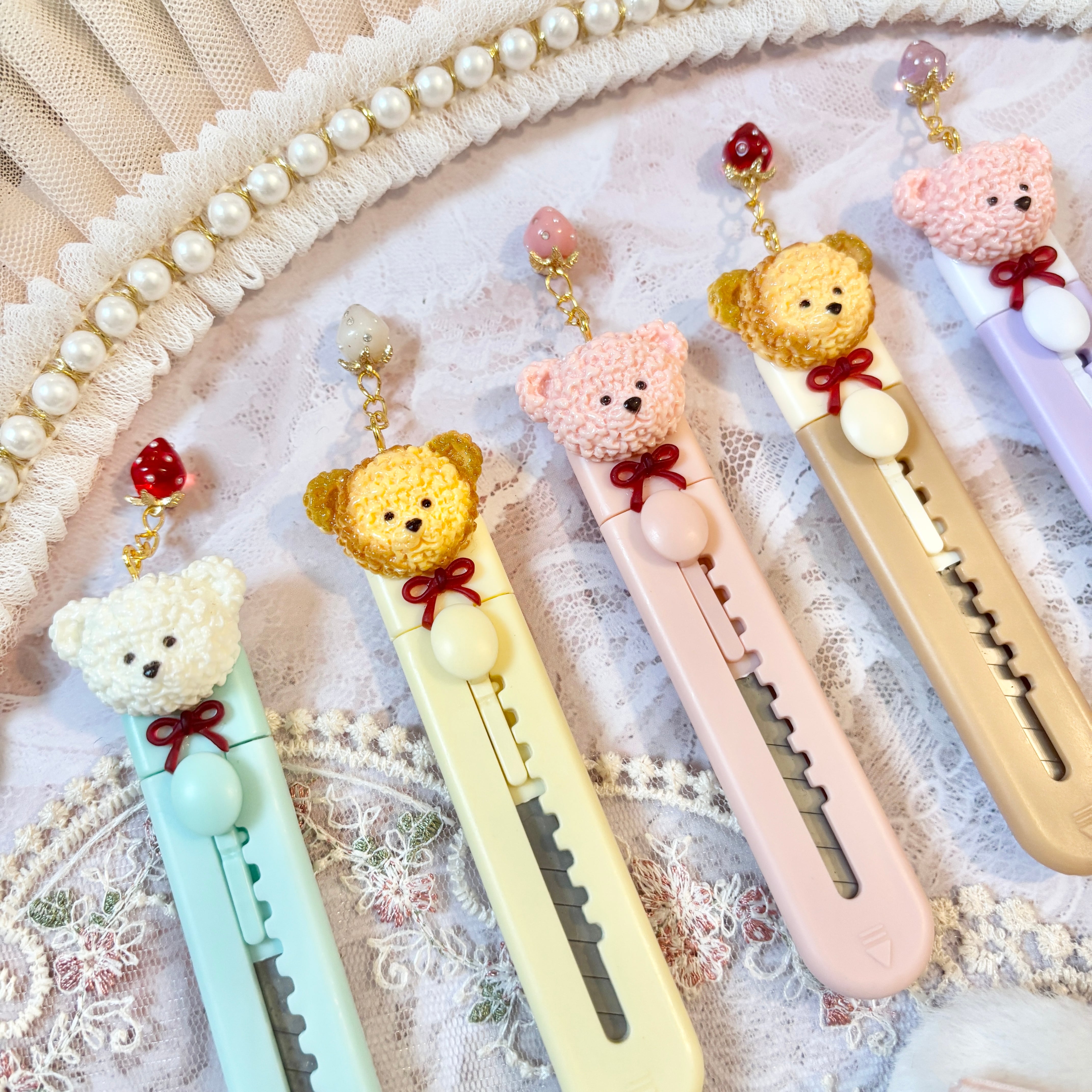 【お好きな2本 選択式】いちごチャーム付きくまちゃんカッター(背面クリップ式)