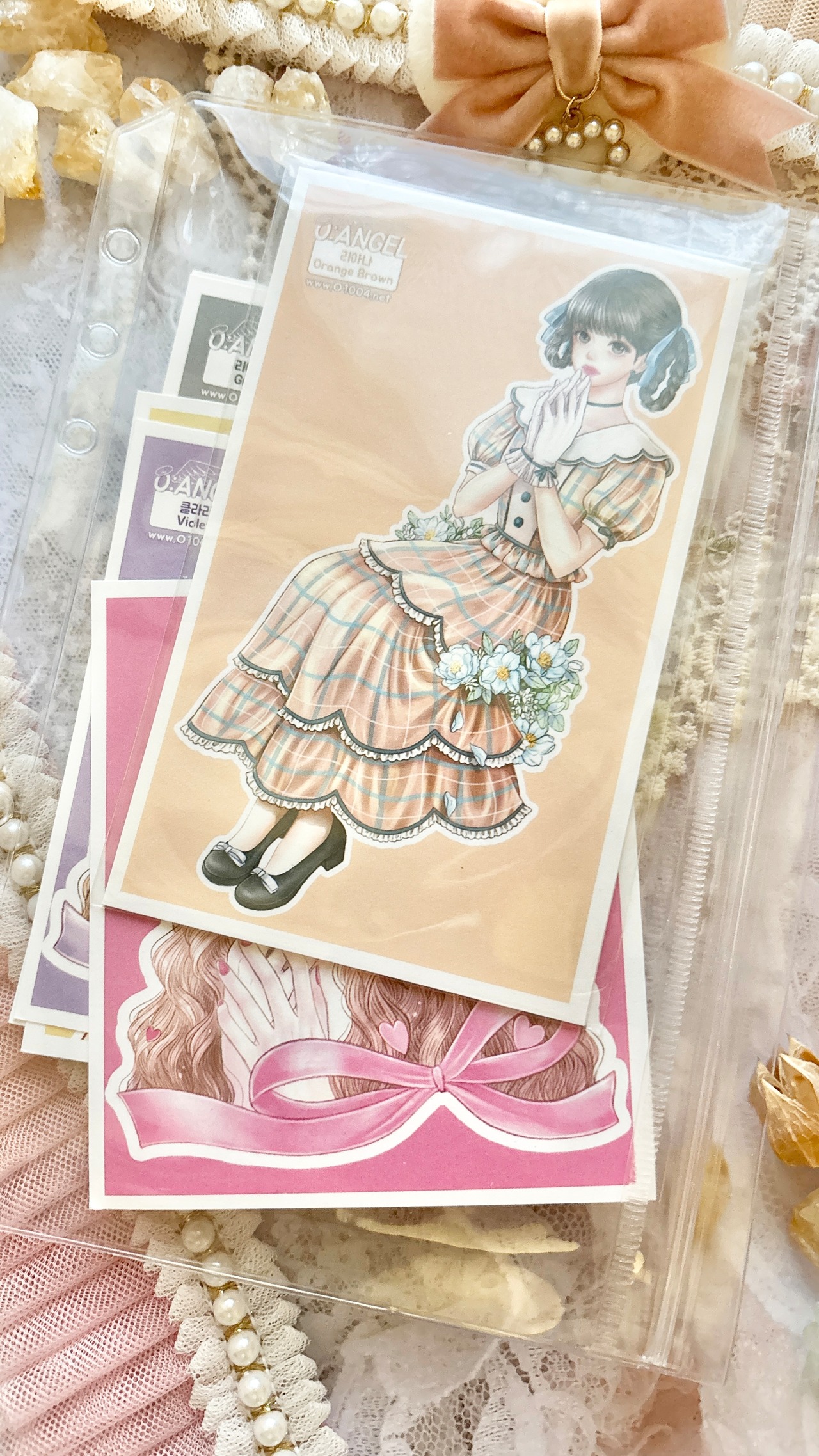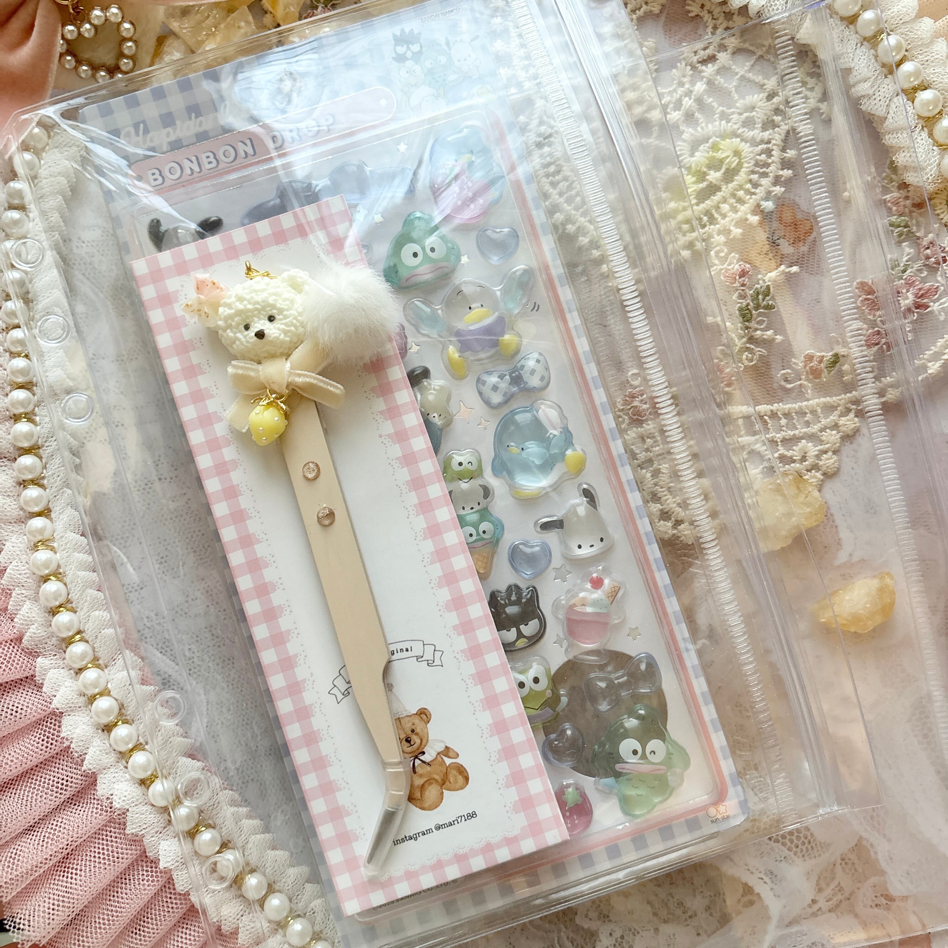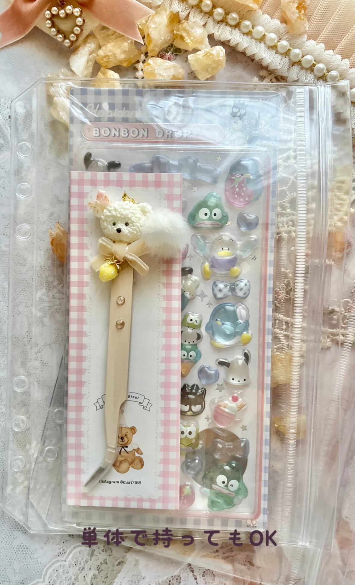【大サイズ】ダブルポケット チャック付きPVC透明リフィル 手帳穴付き ピンセット/ペン/ステッカー持ち運びに