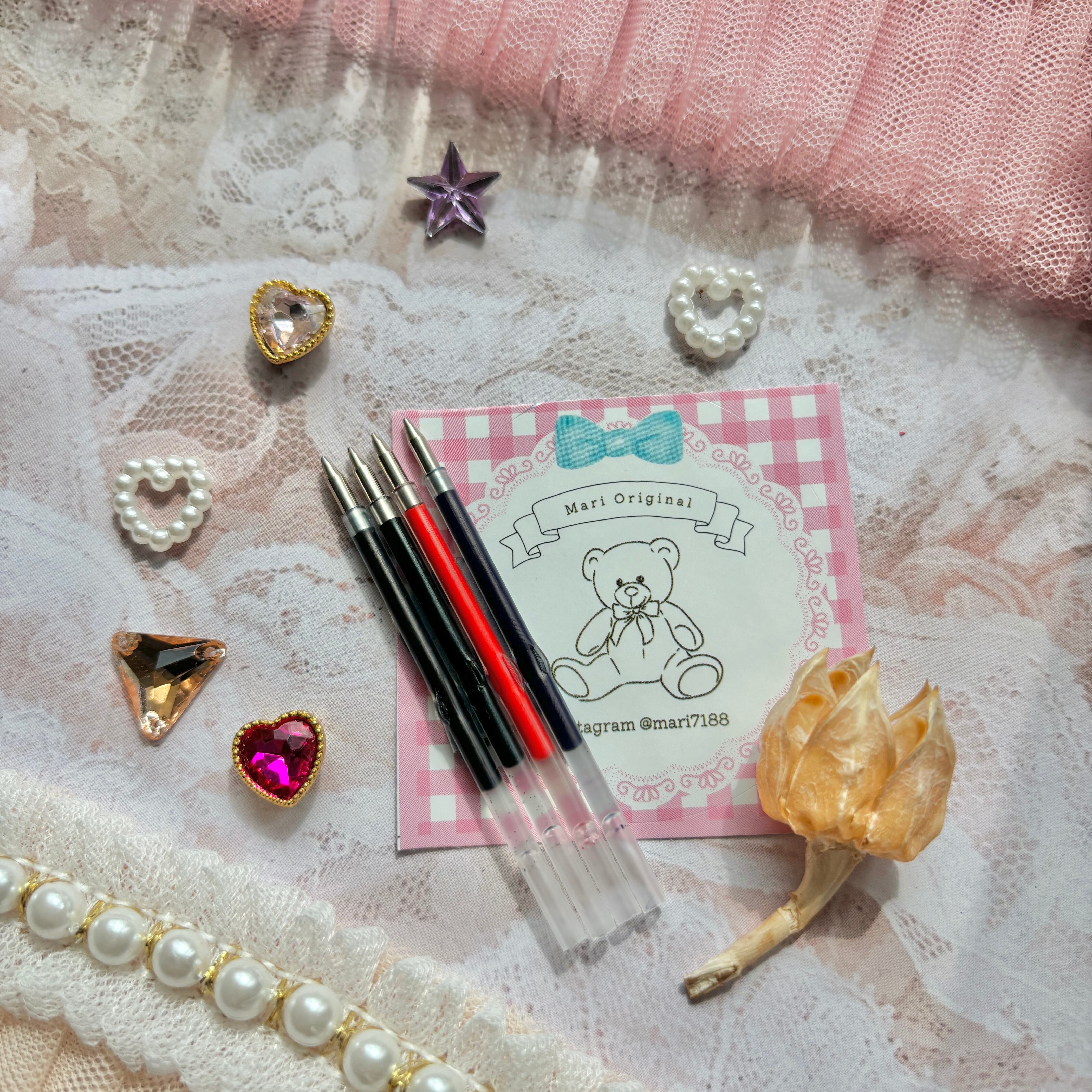特に、デザペ・デザインペーパーなどのコラージュ紙モノがお好きな方が、おすそ分けファイル・おすそ分けボックスを作って、その中にMari Originalのオリジナルペンを入れてプレゼントされるのに人気です。ご自身のセレクトした海外マステや海外文具、メモ帳やステッカーを入れた素敵な素材の中に、ペンが添えられるととっても高見えしますよ!